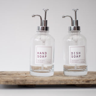 Hand Soap and Dish Soap Clear Glass Bottles With Silver Pump Lid 500ml - Hanker